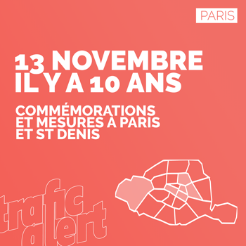À RETENIR Cérémonies liées aux attentats à Paris et St Denis avec diverses mesures sur les lieux du 13 novembre 2015, évitez le coeur de Paris de 12 à 22h.